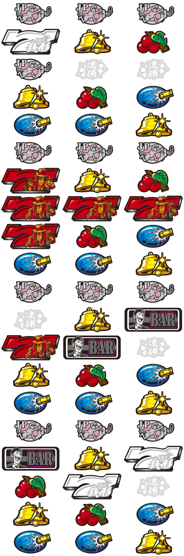 設定 AT初当たり 出玉率 2 1/424.5 97.9% 3 1/416.4 99.0% 4 1/388.1 103.2% 5 1/375.9 107.1% 6 1/300.5 112.1% - リール配列