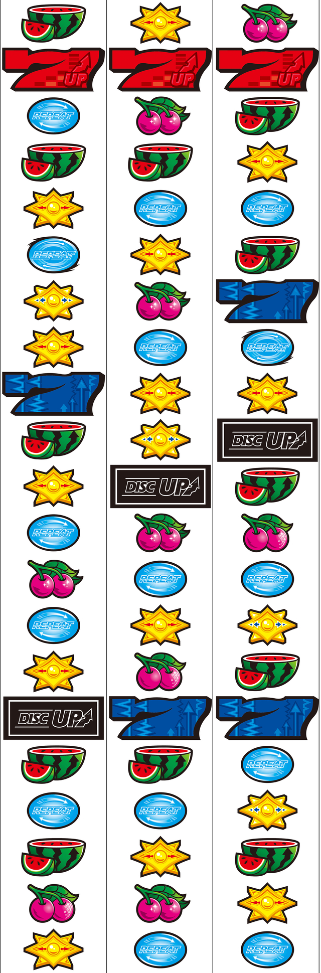 設定 BB合算確率 RB合算確率 ボーナス合算 1 1/287.4 1/496.5 1/182.0 2 1/286.2 1/436.9 1/172.9 5 1/278.9 1/422.8 1/168.0 6 1/276.5 1/397.2 1/163.0 - リール配列
